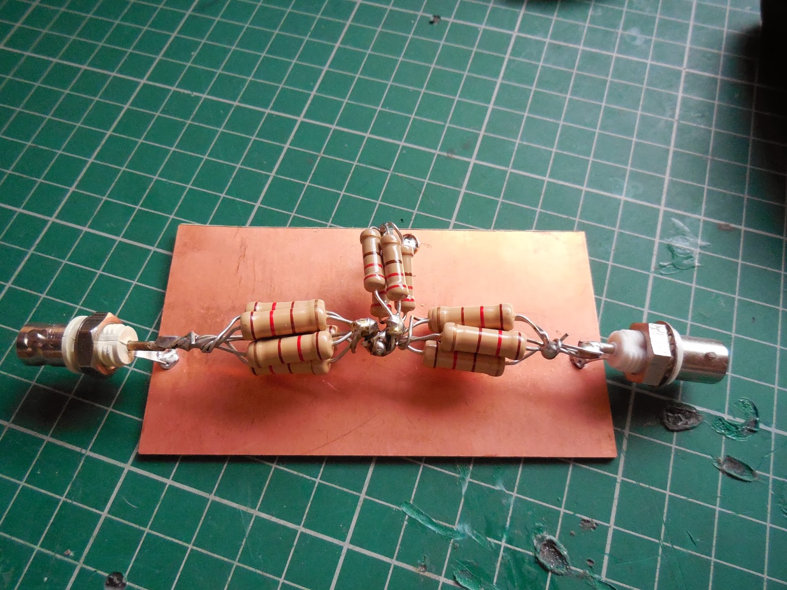 I popped down into the Big City this morning and called at R F Potts. A wonderful electronics outlet that seem to stock anything an everything. I came away with a pile of 2W carbon resistors of suitable values that I can parallel up and make my attenuator (again).